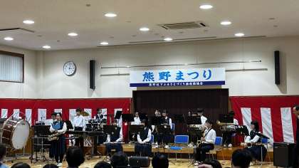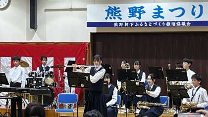 土日の2日間にわたって「熊野まつり」が開催され、本校の吹奏楽部も出演させていただきました。