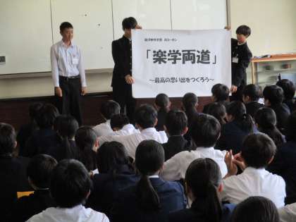 今日は、明日の金沢校外学習に向けて、学年生徒会による決起集会が行われました。