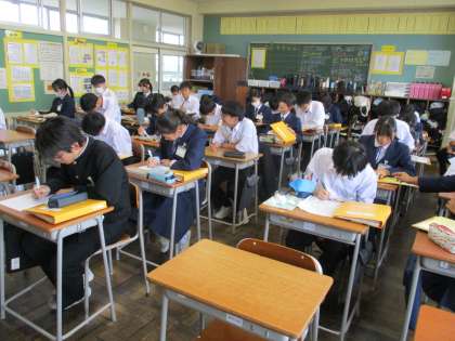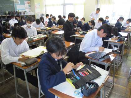 2年生・金沢事後学習 公開日 2024/11/01 更新日 2024/11/01 2年生 11月1日(金) 5、6限 今日の総合的な学習の時間は、金沢校外学習の事後学習として、各自で個人新聞作りをしました。 金沢で探究・追究した課題をもとに、それぞれが個性を発揮しながら新聞にまとめました。 仕上がり次第廊下に掲示をしますので、11/9(土)の興南のつどいの際には、ぜひご覧ください。 (写真 上:2年1組) (写真 中:2年2組) (写真 下:2年3組)