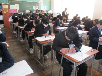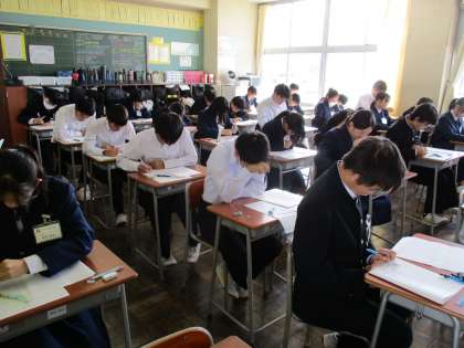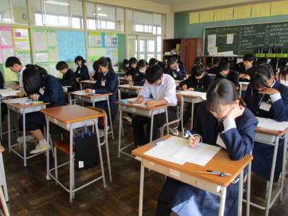 2年生・中教研学力調査 公開日 2024/11/07 更新日 2024/11/07 2年生 11月7日(木) 2限 今日は中教研学力調査2日目でした。 最後の数学では、コンパスと定規を使う作図の問題もありました。 昨日からのテスト、お疲れ様でした。 生徒の皆さん、手応えはありましたか? (写真 上:2年1組) (写真 中:2年2組) (写真 下:2年3組)
