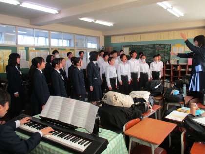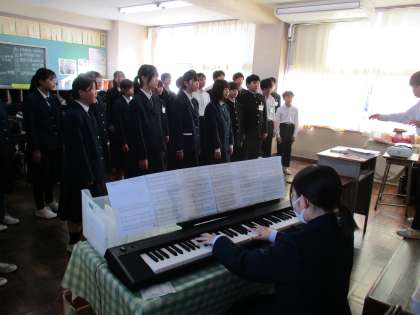 2年生・合唱練習 公開日 2024/11/09 更新日 2024/11/09 2年生 11月8日(金) 今日は音楽科の先生がクラスを回ってくださり、アドバイス等をしてくださいました。 すると、どのクラスもみるみる歌声が変わっていきました。 明日の朝、最後の声出しがあります。 今日のアドバイスを忘れずに明日を迎えてほしい限りです。 (写真 上:2年1組) (写真 中:2年2組) (写真 下:2年3組)