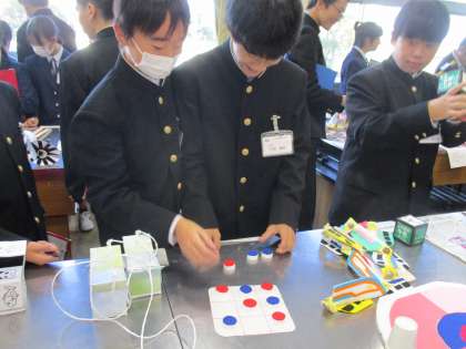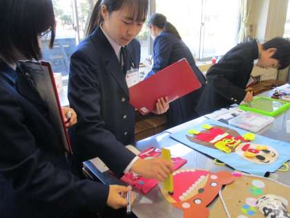 1年生 興南のつどい 作品鑑賞(2) 公開日 2024/11/10 更新日 2024/11/10 1年生 3年生の家庭科で作成した幼児向けのおもちゃを、実際に体験していました。どれもすばらしい作品で、思わず夢中になっていました。