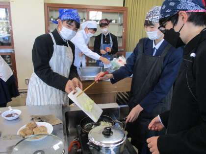 2年2組・家庭科・調理実習 公開日 2024/12/11 更新日 2024/12/11 2年生 12月10日(火) 1、2限 今日は2年2組が調理実習をしました。 おいしそうな香りが学校中を包み込み、他学年の生徒たちもなんだかうらやましそうでした。