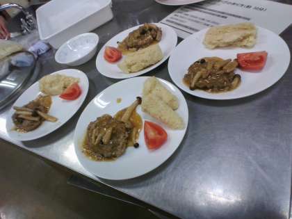 家庭科 調理実習 3年3組 公開日 2024/12/16 更新日 2024/12/16 3年生 12月16日(月) 1、2限 家庭科室 煮込みハンバーグと蒸しパンの調理実習をしました。どの班も調理のポイントを意識して肉や小麦粉をこねたり、野菜を切ったりしました。 おいしそうにできましたね。