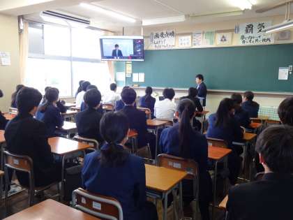2学期終業式 公開日 2024/12/24 更新日 2024/12/24 今日の興南中 今日で2学期が終わります。 授業やテスト、行事を通して、自分自身をレベルアップできた人も多いのではないでしょうか。 今日は、インフルエンザ感染が拡大しつつある学年があったため、リモートで終業式を行いました。 安全や健康に気を付けて、楽しい冬休みを過ごしてください。