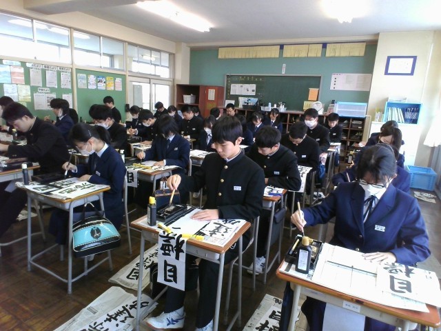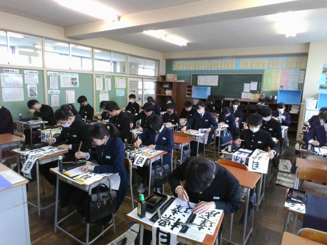 3年生 書初大会 公開日 2025/01/08 更新日 2025/01/08 3年生 3年生の今年のお題は「目標達成」です。それぞれの目標や将来の夢を思い描きながら、丁寧に取り組んでいます。心を込めて書に向き合うことで、気持ちも新たによいスタートをきってほしいと思います。