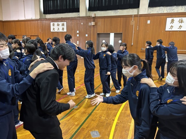 3年生 最後の学年レクリエーション 公開日 2025/03/11 更新日 2025/03/10 3年生 卒業委員会の企画・運営で、中学校生活最後の学年レクリエーションが行われました。じゃんけん列車やクイズ大会、陣取りゲームを行い、みんな笑顔で楽しそうに過ごしていました。卒業まであと少しですが、仲間との絆を大切にして、学校生活を送って欲しいと思います。