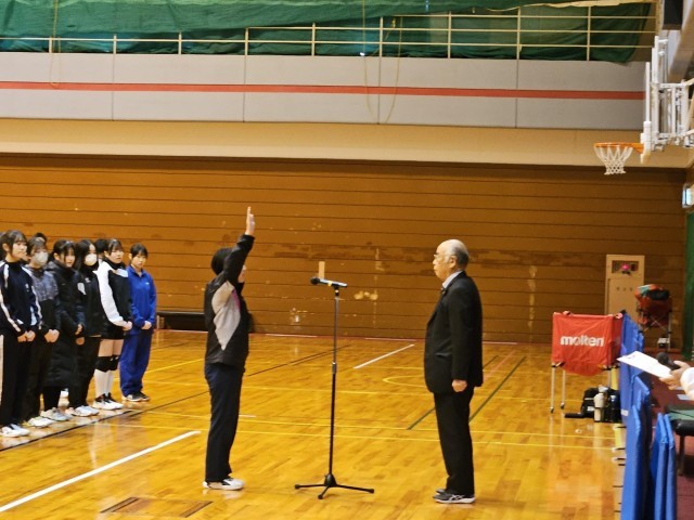 3月8,9日は富山市協会杯でした。(バレーボール部) 公開日 2025/03/11 更新日 2025/03/10 今日の興南中 8日、9日の両日で、富山市バレーボール協会杯が開催され、本校のバレーボール部はA,Bの2チームが出場しました。大会に先立ち行われた開会式では、本校バレーボール部の部長が選手宣誓をしました。緊張していましたが、本番は堂々と話していました。1日目はリーグ戦、2日目が1日目の結果から組まれたトーナメントで試合が進みました。