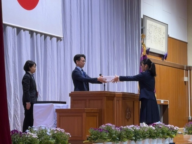 育友会長様より記念品をいただき、卒業に向けてのお言葉をいただきました。