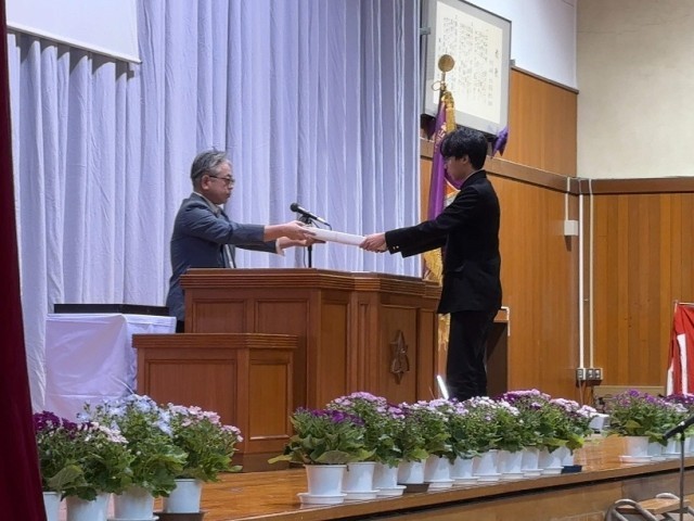 卒業式を明日に控えた今日、育友会記念品授与式、同窓会入会式及び総会が行われました。