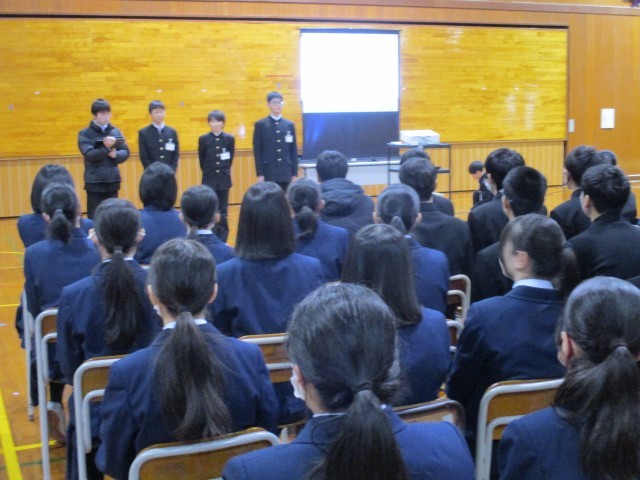 2年生・学年集会 公開日 2025/03/21 更新日 2025/03/21 2年生 3月21日(金) 4限今日の学年集会は、学年生徒会からの1年間の振り返りから始まりました。生活面や学習面での、良いところや反省点、改善点等をスライドを使って、わかりやすく発表しました。その後は、学年の先生方1人1人からお話がありました。