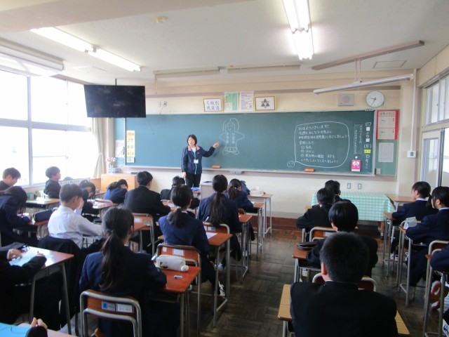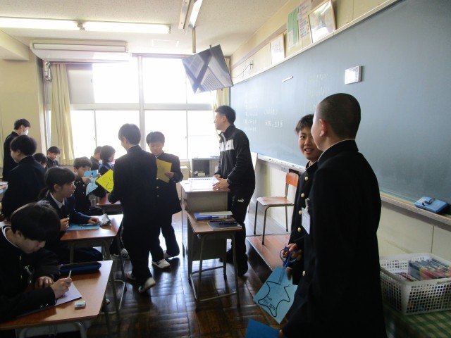 学級活動では、中学生になっての目標を書きました。それぞれ新たな生活に期待を膨らませいる様子でした。