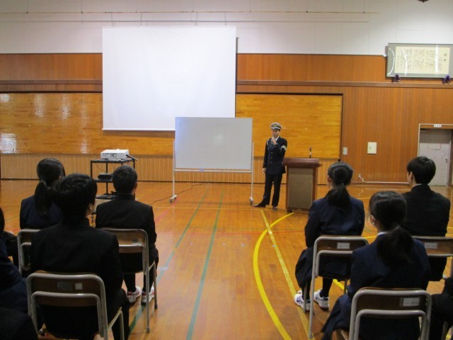 富山南警察署の交通課の方から、交通安全についてお話をしていただきました。年度の変わり目は、交通事故が多いので、今日のお話を参考にして交通安全に気をつけて行動していきましょう。