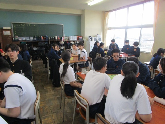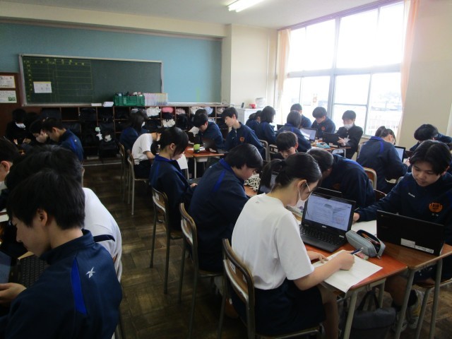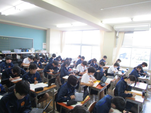 3年生は、修学旅行に向けて平和学習を行いました。修学旅行で訪れる広島平和記念資料館の事前学習として原子爆弾が日本に投下された理由などを調べました。