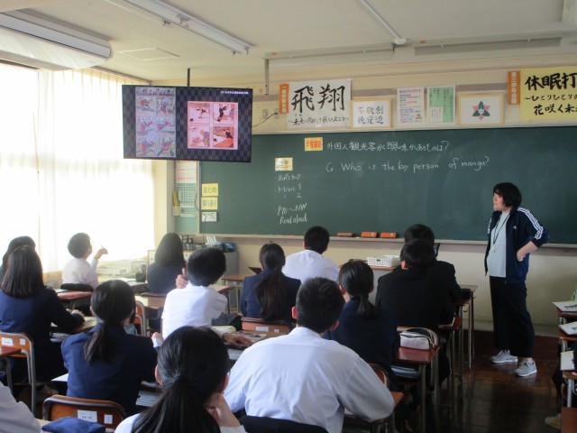 1組の英語では、「外国人観光客に日本の魅力を伝えよう」という課題に取り組んでいました。2組の社会では、第一次世界大戦の頃の世界情勢について学習しました。3組の理科では、電流計の使い方について実際に使ってみながら確認しました。