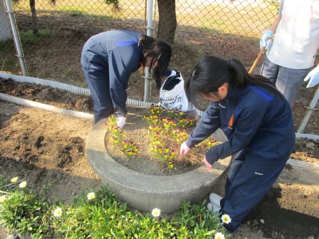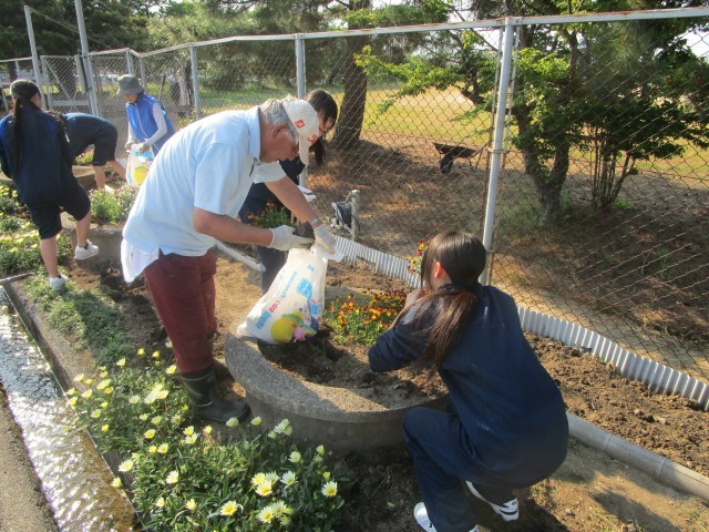 放課後にフラワーロードの花壇整備を行いました。美化実践部員が地域の方と共に、チューリップの球根の採取や除草、プランターの掘り起こしを行いました。地域の皆様、事前の準備等ありがとうございました。次回の5月28日(水)には、実際に花苗を植えます。