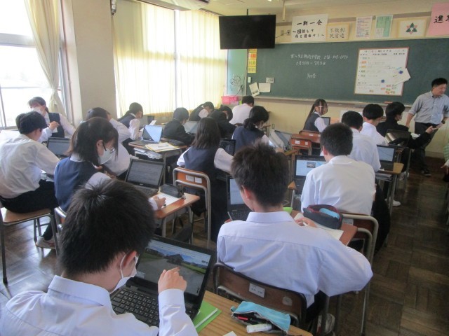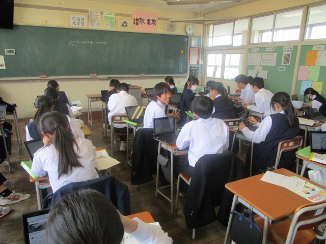今日の総合的な学習の時間は、各自で自分が行く事業所んいついて調べました。道順についても一人一台端末を活用して確認しました。今月末には、マナー講座も実施する予定です。本番に向けて気持ちを高めていきましょう。