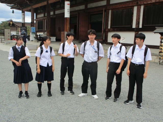 京都班別学習の様子です。寺社仏閣など伝統的な建造物の見学を通して建物の歴史について学びました。