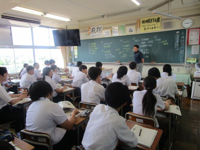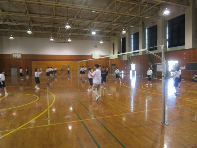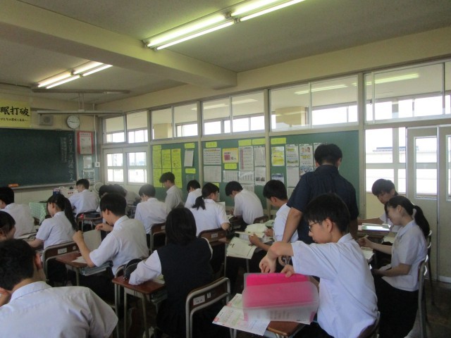 3年生の授業の様子です。1組の社会では、戦後から現代までの日本の歴史について学習しました。2組の体育では、バレーボールに取り組んでいます。試合形式でラリーが続くように声を掛け合って練習しました。3組の理科では、期末考査の範囲の確認を行っていました。どのクラスも授業に真剣に取り組んでいて、さすが3年生と感じました。