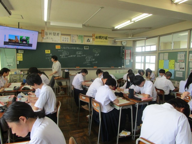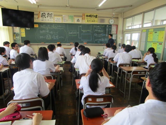 3年生の授業の様子です。1組の理科は、生物の分野の導入でした。「遺伝」について見通しをもって学習するために、単元のねらいについて確認しました。2組の英語は、グループで長文の読解に取り組んでいました。3組の体育は、バレーボールの学習です。ゲーム形式で声を掛け合いながら練習に取り組んでいました。3年生は、来週、校内学力調査を控えています。計画的に学習を進めていきましょう。