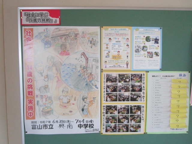 6月30日(月)より「社会に学ぶ『14歳の挑戦』」の活動に取り組んでいます。活動を見に行った教員からは、緊張しながらも一生懸命に活動に取り組んでいたと聞いています。今日で2日間の活動が終わりました。残り3日間、たくさんのことを学んできてください。応援しています。