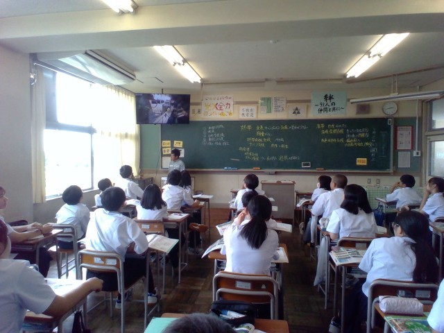 1年生の授業の様子です。1組の国語では、詩の表現などから言葉について学習していました。2組の社会では、地理の分野を学習しました。動画を見ながら、赤道付近で暮らす人々の生活様式について確認しました。3組の数学では、文字式について学習しました。少しずつ難易度が上がっていきますね。