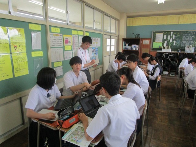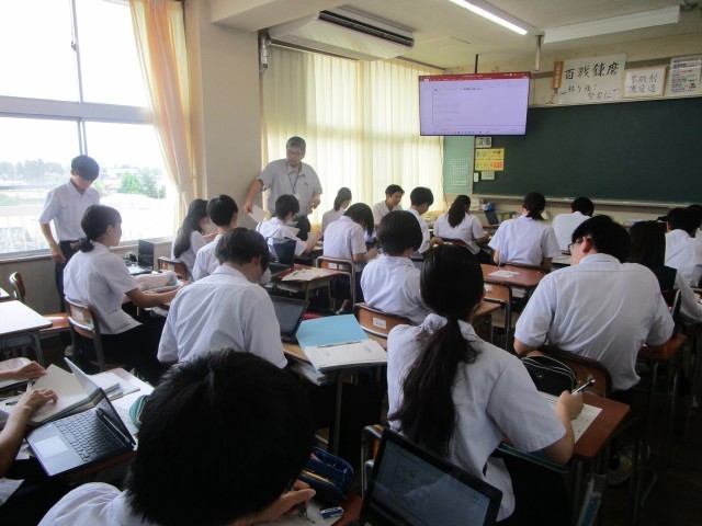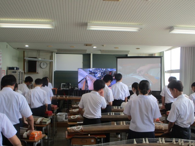 3年生の授業の様子です。1組の音楽は、日本に古くからある楽器「琴」に触れました。指先の細かな奏法は、ICTを活用して、授業者が事前に撮影した動画を見ながら演奏しました。2組の数学もICTを活用して、教え合いながら取り組みました。3組の社会は、公民分野の学習でした。他校から研修にいらした先生から学習に取り組んでいる様子が素晴らしかったという感想をもらいました。3年生頑張っています!
