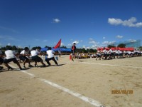 選手種目「綱引き」の様子です。思いを一つに、力を合わせて綱を引き合いました。白熱...