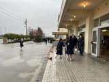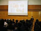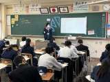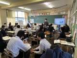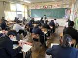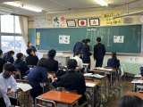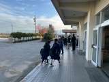 11月29日(火) フェーン現象で南風が強く吹いています。 2年生が朝ボラで落...