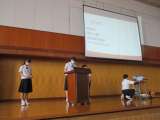 6月30日(火) 1限 2年2組の国語は、体育館で「プレゼンテーション」の...