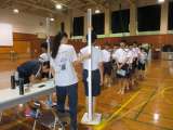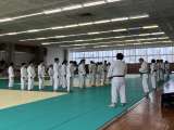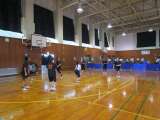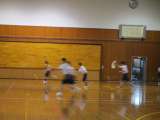 体育館のもう半分を使って、バレーボール部も頑張っていました。写真は2グループに分...