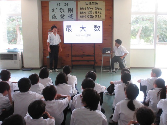 最大数というゲームと先生○×クイズ、椅子ゲームをしました。
