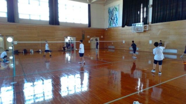 写真は体育大会デコレーションの作成の様子と、男子バドミントン部の活動の様子です。