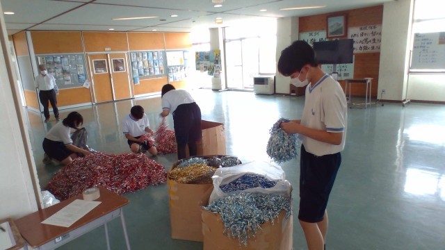 実行委員が道具を確認したり、団リーダーが団演技の曲を決めたりしています。