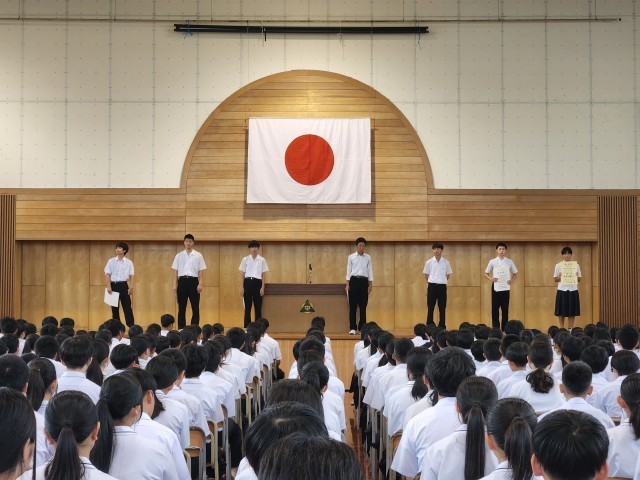 まずは夏休み期間に表彰された生徒の受賞報告会がありました。