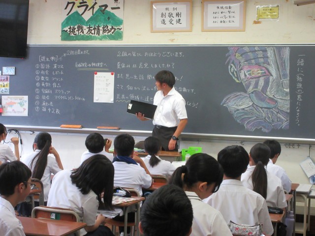 始業式の後、1学年は学年生徒指導担当からの話を聞きました。