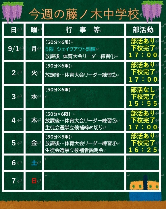 9月1日(月)~7日(日)の予定