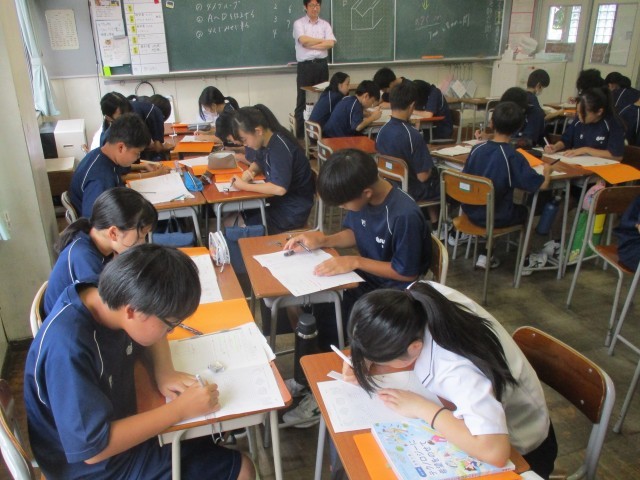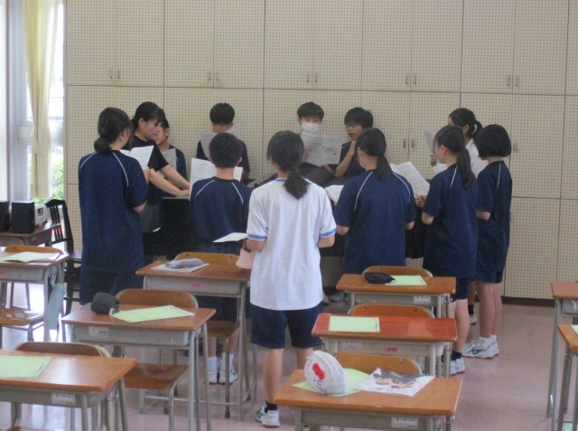 9月5日(金)1学年 授業風景 公開日 2025/09/07 更新日 2025/09/05 1学年 1学年の授業の様子を紹介します。【画像1・2】音楽:腹式呼吸をつかってパートの音程を歌おう【画像3】技術:キャビネット図をかこう【画像4】英語:What time ~? It's ~.の表現をマスターしよう【画像5】家庭:おいしく、安心・安全な加工食品を選ぶポイントは何だろう +2 1学年