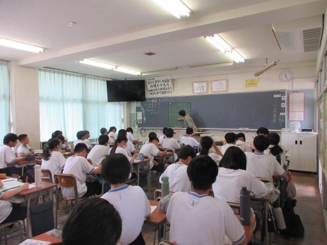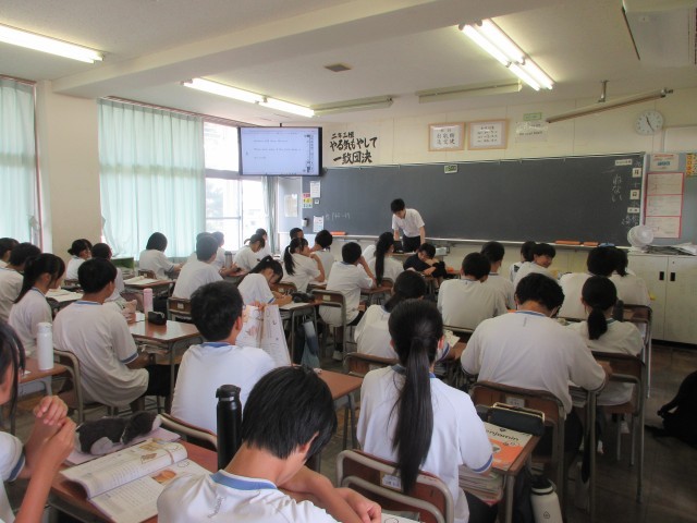 上から 1組 理科、2組 社会、3組 英語、4組 数学