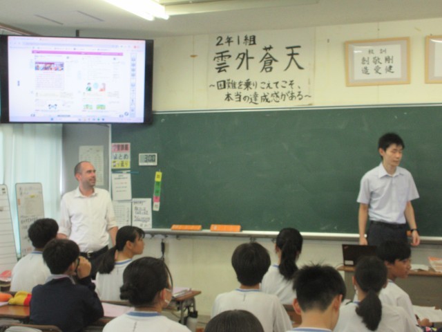 1枚目:1組は英語の授業でALTと会話の練習をしています。
