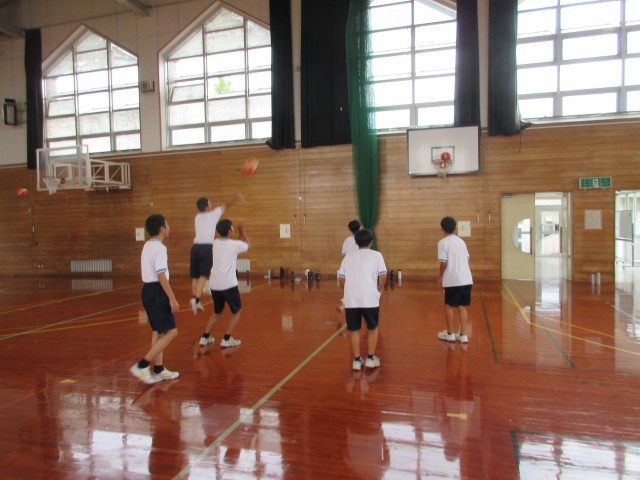 2枚目:2組は体育でバスケットボールのシュート練習をしています。