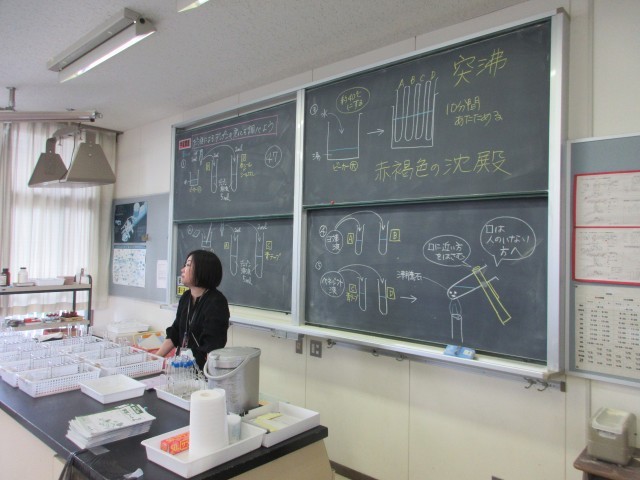 3枚目:3組は理科で、唾液の消化酵素について実験をしています。