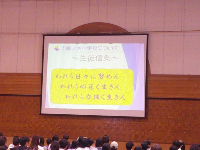 9月20日(土)学校公開日の様子② 公開日 2025/09/20 更新日 2025/09/20 学校 学校説明会の様子です。校長が本校の特色について説明をしました。また、生徒会執行部の生徒が、クイズを交えながら、中学校の生活について詳しく説明しました。藤ノ木中3年生の給食人気NO.1メニューは、「ビビンバ」です。 +2