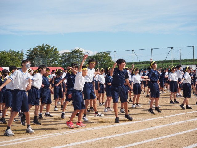 9月22日(月) 体育大会リハーサル① 公開日 2025/09/22 更新日 2025/09/22 news 今日の1限から3限にかけて、体育大会のリハーサルを行いました。開会式から始まり、各学年の100m走、学年種目、選抜リレー、閉会式までの動きを確認しました。写真は開会式、準備運動、100m走の様子です。 +4