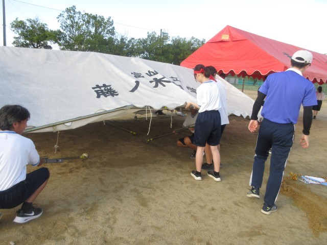 大いに盛り上がった体育大会も無事に終了しましたが、3年生にはもう一つ大仕事があります。それは、「テントの片付け」です。