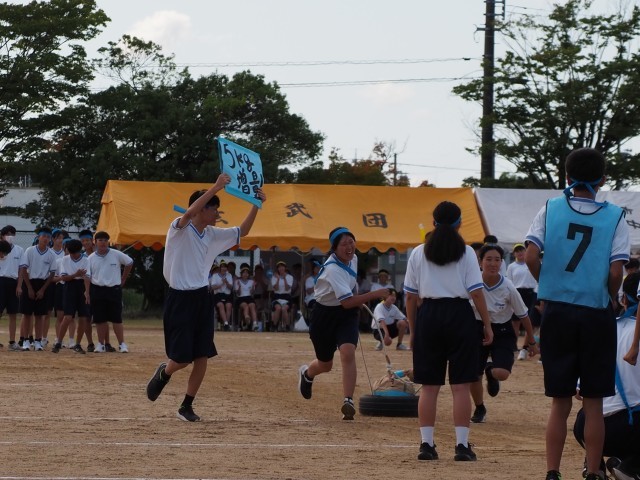 9月26日(金) 第38回体育大会 ダイジェスト⑤ 公開日 2025/09/26 更新日 2025/09/26 news 2学年の「大米騒動」の様子です。5kg増量したときには、団席からも応援の拍手が沸き起こりました。 +4
