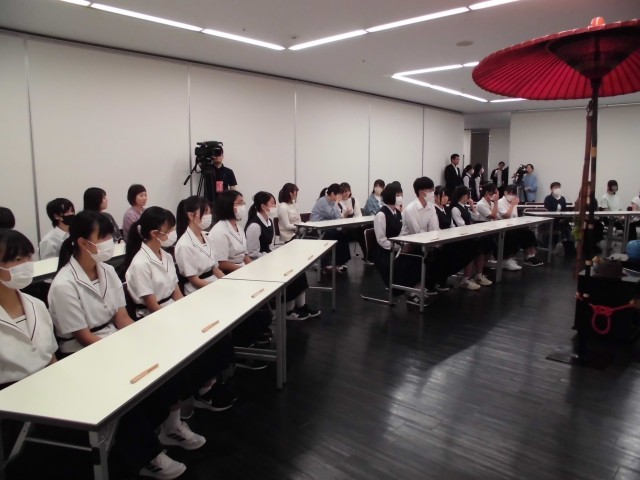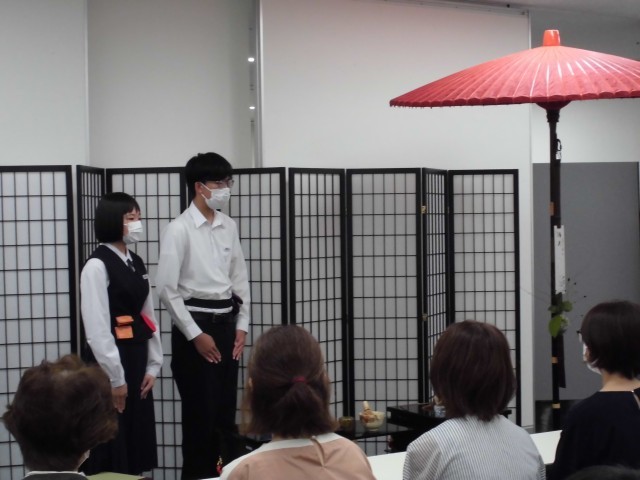 茶道部は、富山県民会館で行われた県中文祭の茶道部門に参加しました。たくさんの来場者があり、緊張しながら点前やお運びをしました。