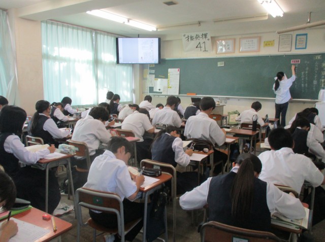 10月9日(木)1学年 授業風景 公開日 2025/10/09 更新日 2025/10/09 1学年 1学年の授業の様子を紹介します。【画像1】数学:ともなって変わる数量の関係について考えよう【画像2】英語:モンスターの紹介文を完成しよう【画像3・4】保健体育:ソフトボール【画像5】国語:項目を立てて書こう~案内文を書く~ +2 1学年