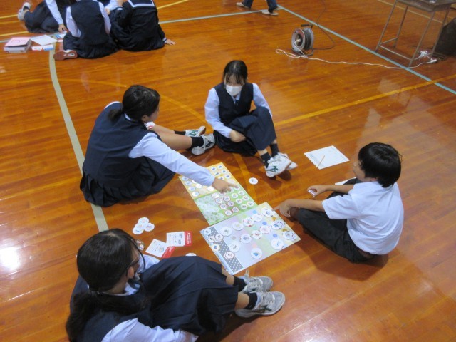 今日はSDGs学習ゲーム「富山市版 Get The Point」を行いました。ゲームに取り組む中で、「持続可能な社会とはどんな社会だろう」ということを体感しました。世界を持続させるために自分自身がどのような行動をとるべきかを考える、貴重な機会となりました。