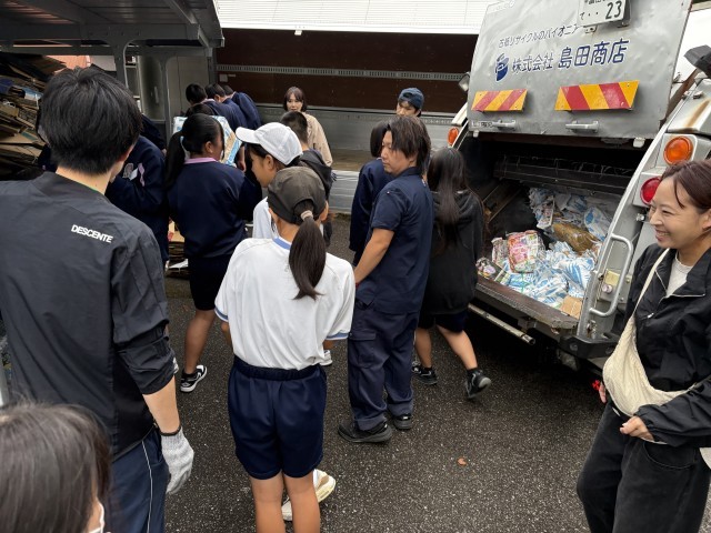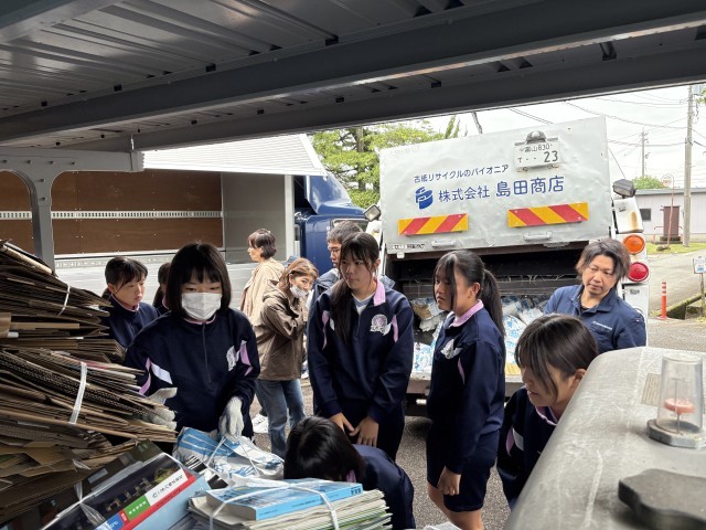 たくさんの生徒が朝から家の近くの集積所に集まり、協力してトラックに新聞や段ボールを運んでいました。